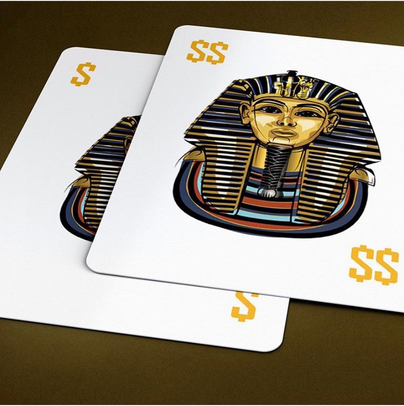 Aaron: There are a few different attributes. Personally, I like to play the most traditional way – with the big and little jokers as well as the two of diamonds and spades. So, for the Beginner Deck, I wanted to be innovative. I removed the two of hearts and clubs, and I included instructions for the deck. I also made sure that it’s obvious which joker is which. Therefore, people no longer have to write on the cards. There’s a big version and a small version of King Tut on my joker cards, in addition to one money sign and two money signs on the small and large jokers, respectively. And, of course, my favorite suit are the spades, which are black and gold for The Game of Spades. I made sure to give the actual spade its just due in the game and highlight just how important it is.