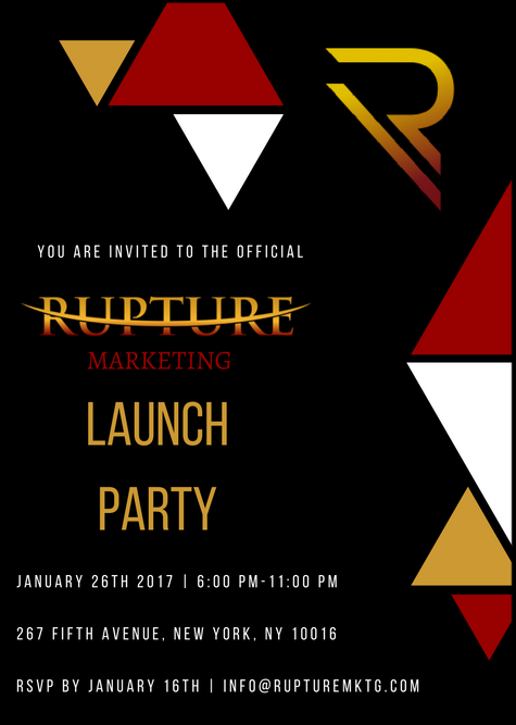 WHY: Be among the first to be introduced to RUPTURE Marketing and its upcoming projects. RUPTURE’s core foundation is its commitment true disruption and to helping our partners innovate within their industry, and then beyond. RUPTURE's Partners, as "clients" are referred, include businesses in both the public and private sectors, as well as start-ups and individuals. RUPTURE’s staff expertise spans a variety of industries, from music and film to sustainability and tech.