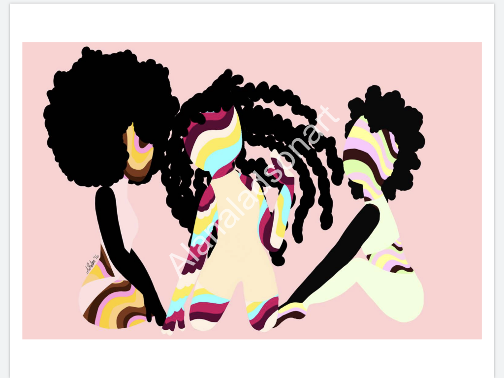 Alana Ladson Art is a small black women-owned business that creates fashion enamel pins, art prints, stickers and more of women of color along with other magical beings.
