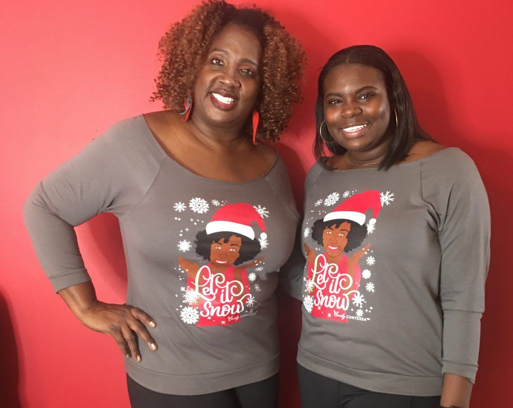 Be cute, curly and festive this holiday season with Curly Contessa's "Let It Snow" apparel!