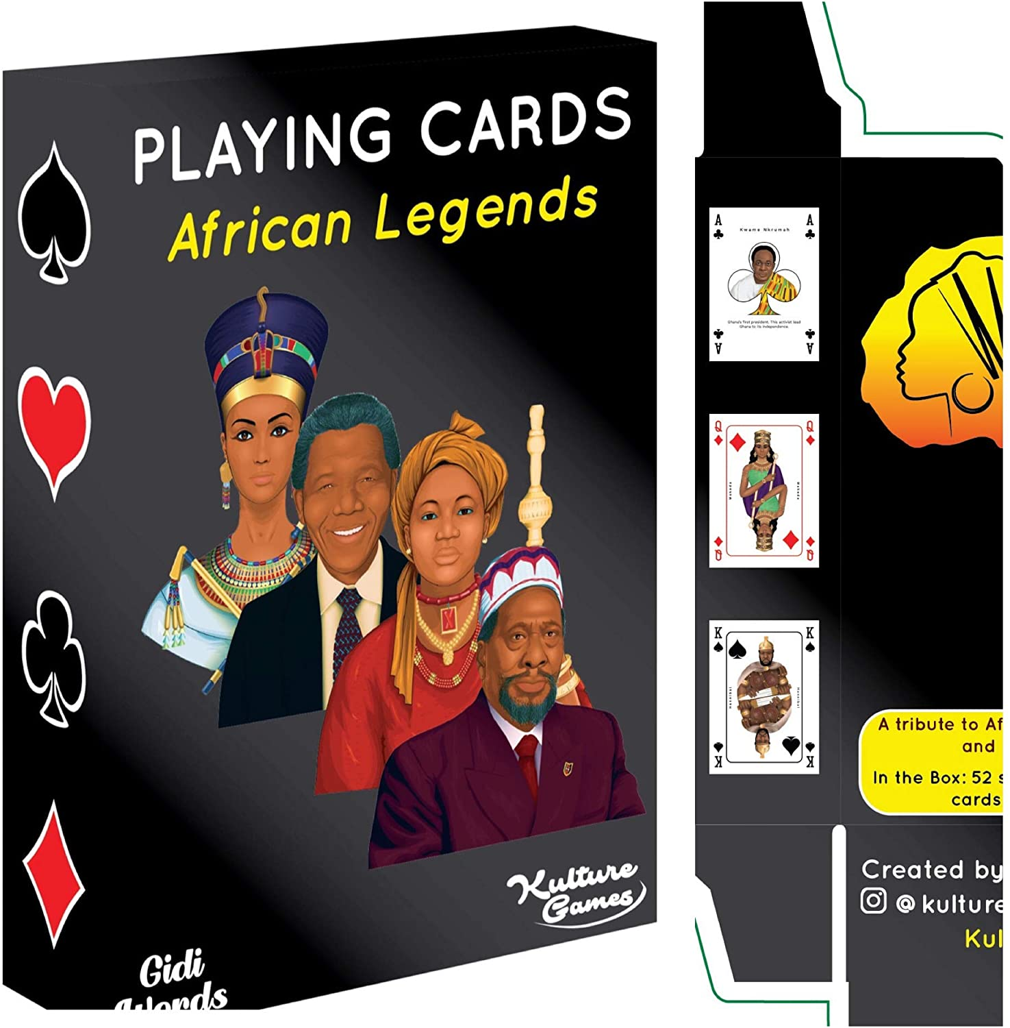 I’m tired of the basic-looking playing cards. Are you? The next time you play poker or spades, pull out the KultureGames Playing Cards: African Legends. Instead of using the typical Ace, King, Queen, and Jack cards, play your games with African legends like Nefertiti, Mansa Musa, and Nelson Mandela. Now, we all know that the American school system failed many of us in teaching us Black history. I can’t pretend to know every name on these cards, but they do serve as a learning tool to dive deeper into the history of our ancestors.
