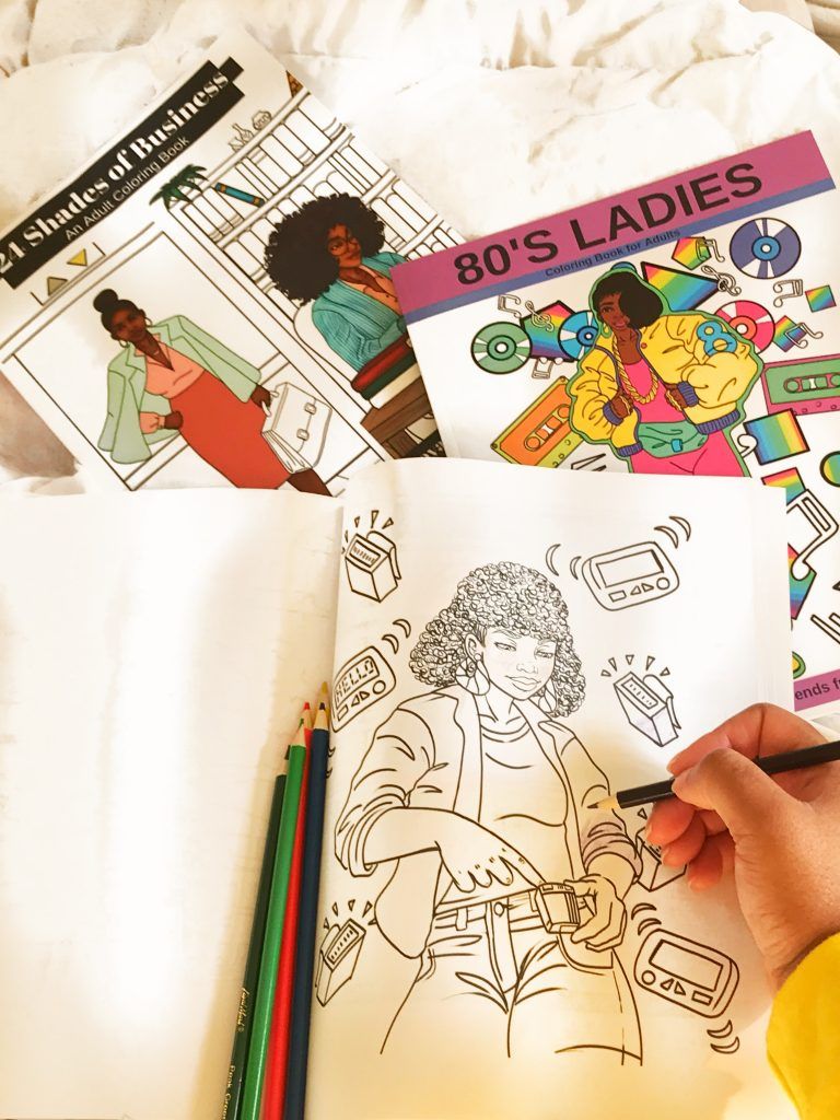 Latoya: Women can be so self-sufficient and self-sacrificing that sometimes we can forget the importance of self-care. I knew I wanted to create something that I could relate to because representation matters, plus coloring was like therapy for me. Coloring allows us to switch our brains off from other thoughts and focus and concentrate only on the moment which can help decrease stress. The time and focus that adult coloring takes can help remove the focus from the negative issues and habits and focus them in a more productive way. When we are thinking about which color to choose and when we are applying crayon or colored pencil to paper, we are also working on problem solving. Who knew all of this was involved from the simple act of coloring and bringing a picture to life? Even now, many psychologists suggest coloring to patients as a means of relaxation, and as a calming tool.