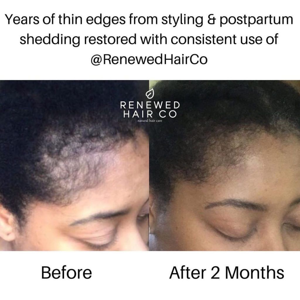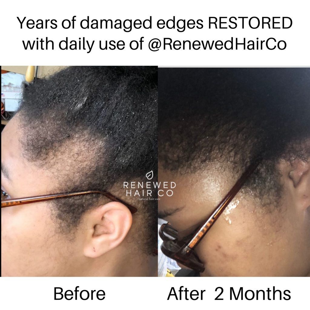 One of our most memorable testimonials came for a woman who had been domestically abused resulting in scarring of her scalp from chemical burns and traction alopecia after repeated pulling. She had been wearing wigs for countless years, as nothing had hoped her hair grow. However, after using our Renewing Hair Elixir consistently for some months, she saw huge improvements and had a new level of confidence in her healing process. This is why Renewed Hair Co was started, to help others who were struggling find transformation.