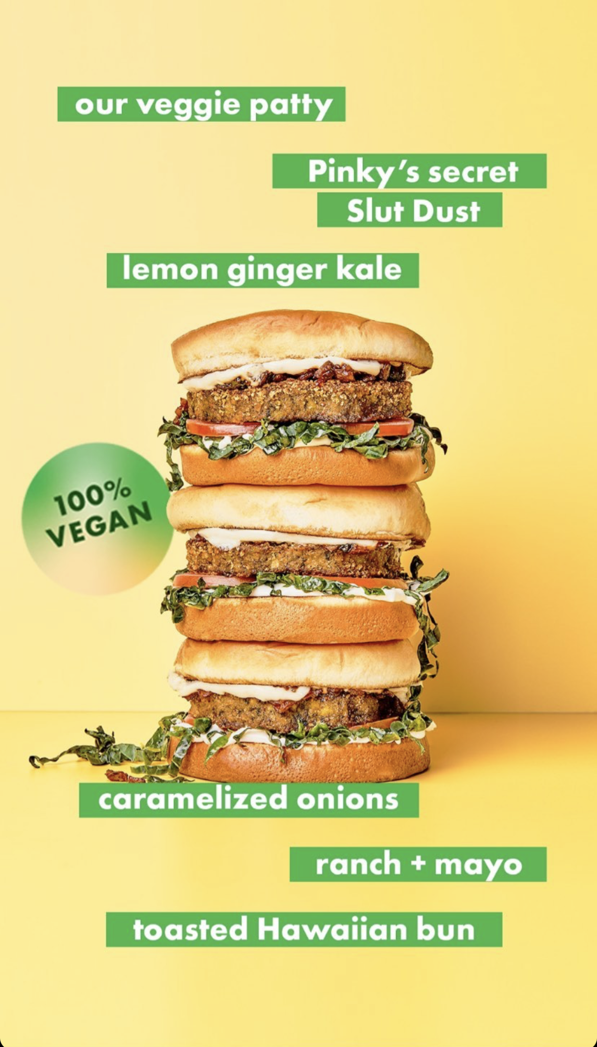 Whether you’re vegan or a meat eater, customers will happily dive into this burger for the flavor alone. Chef and owner Pinky Cole is putting her special touch on the SluttyShack burger with her secret Slut Dust and topping it with lemon ginger kale, caramelized onions, vegan ranch, and vegan mayo all on Slutty Vegan’s signature toasted Hawaiian bun.