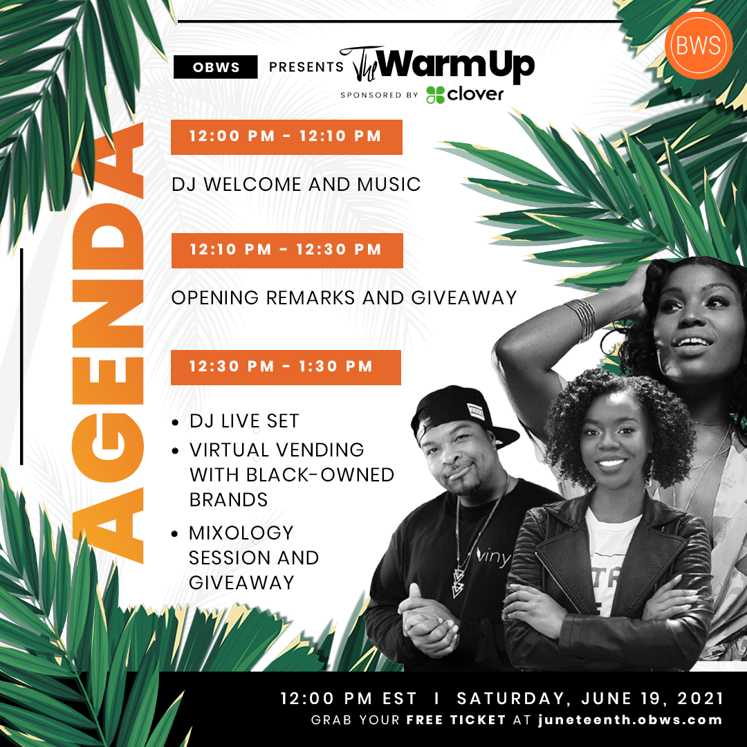 Juneteenth 2021 was one to remember! Off the recent news of Juneteenth becoming a federal holiday, Official Black Wall Street, in collaboration with Clover, kicked off celebrations with The Warm Up at The OBWS Virtual Park. We packed music, cocktails, trivia, virtual vending and prizes into 90 minutes for the pre game event, and you can watch it here.