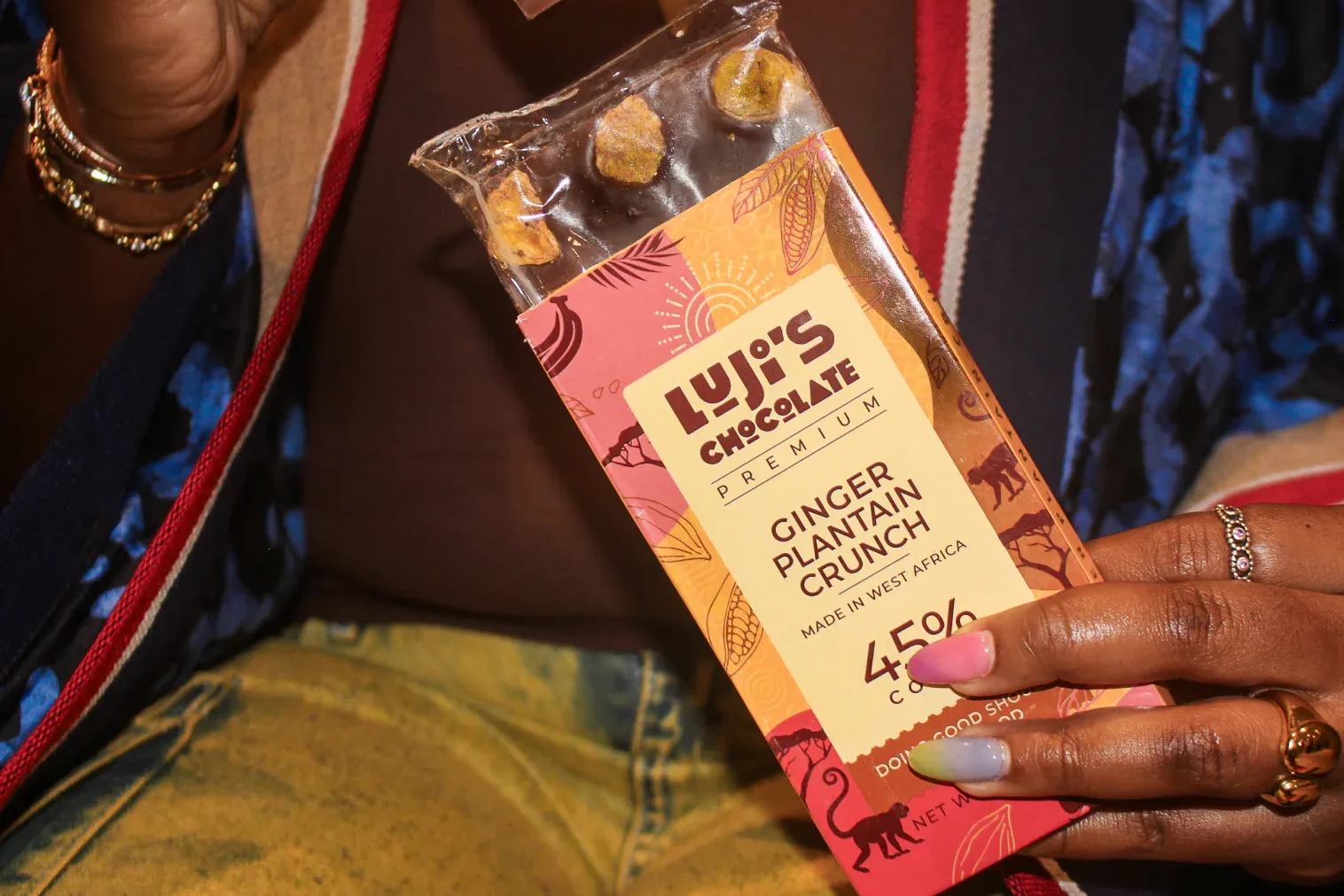 What sets Luji’s Chocolate apart is its distinctive flavor profile. By blending cocoa with West African spices and ingredients, such as ginger, plantain and suya, each bar is bold, aromatic and layered.